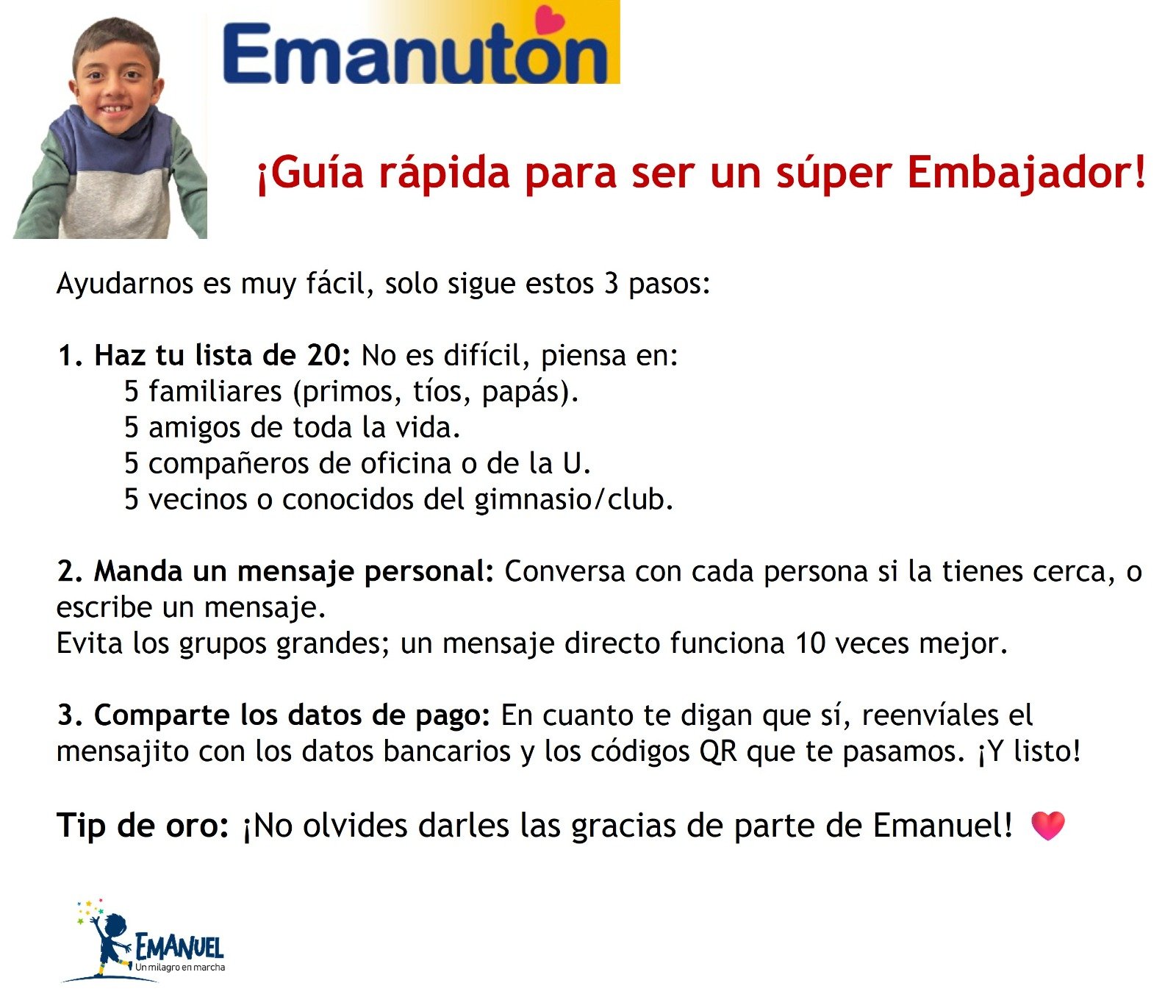 Ayúdanos a difundir este milagro en marcha y que la mayor cantidad de personas se enteren de Emanuel y nos puedan ayudar. Juntos podemos conseguirlo!